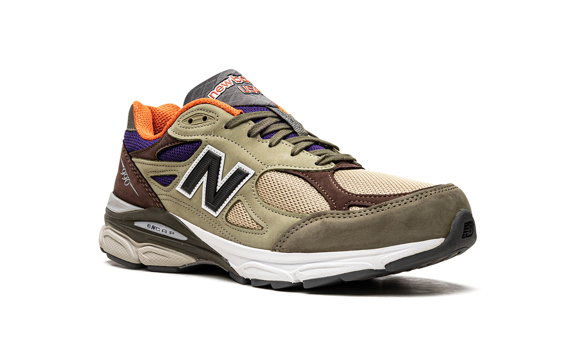 The New Balance 990 V3 Made in USA “Khaki” is a colorway of the popular casual shoe with a unique design. From New Balance’s Made in USA line designed by Aimé Leon Dore founder Teddy Santis, the “Khaki” 990 V3 features a tan mesh base with tonal leather overlays on either side. Brown leather overlays are found on the toe, collar, and heel. An olive green leather panel is located on the toe and heel. Black “N” branding appears on either side of the shoe and “990” detailing is found in silver on the lateral side of the heel. “New Balance” branding dots the tongue. Underfoot, the shoe’s comfortable, ENCAP cushioned midsole completes the look.