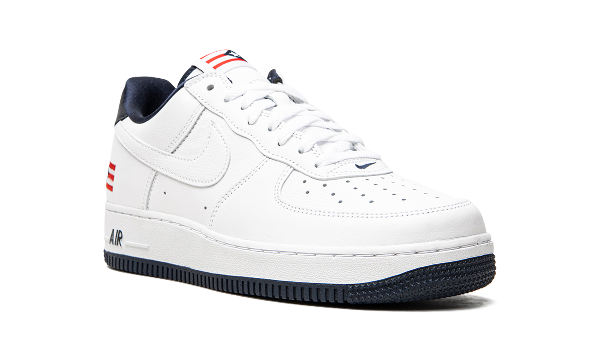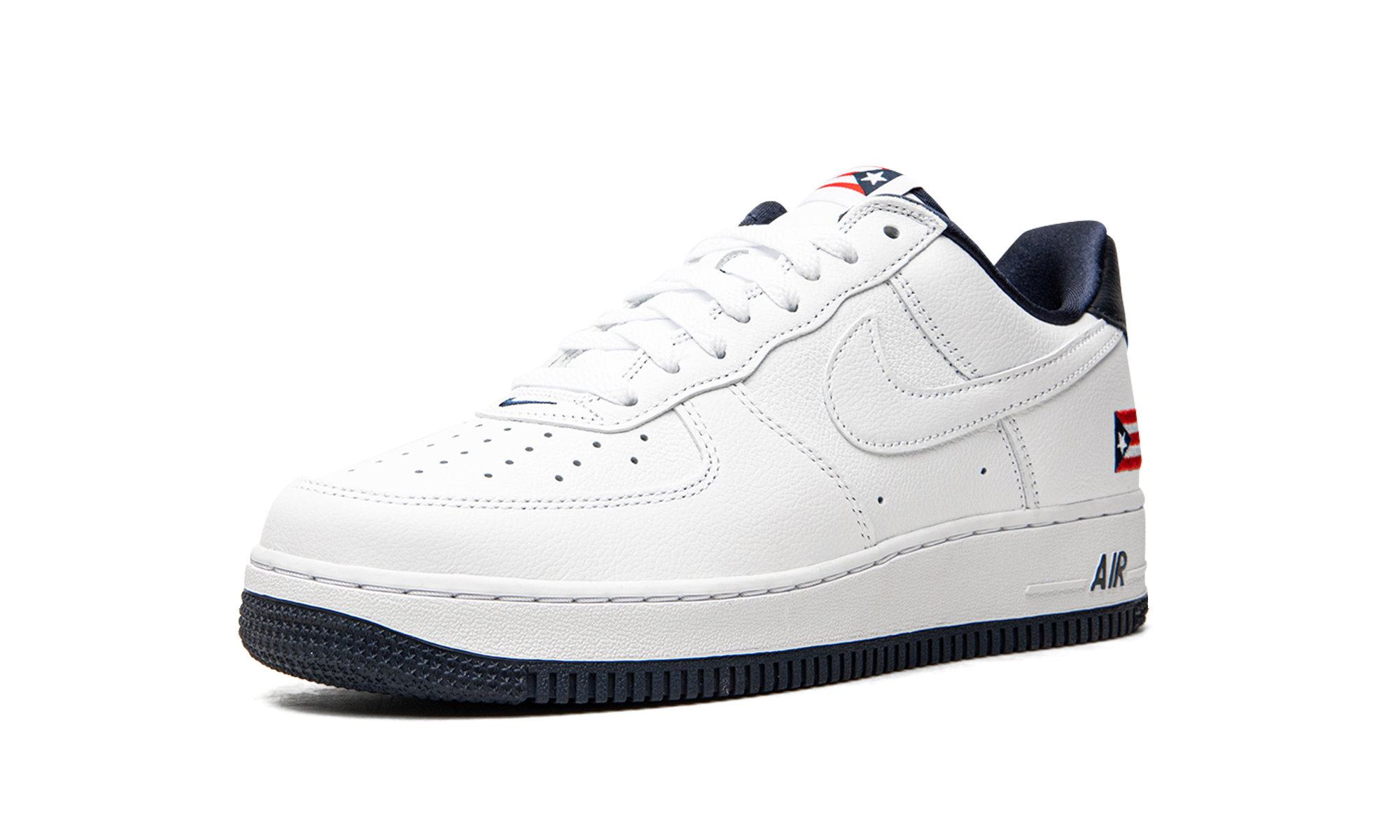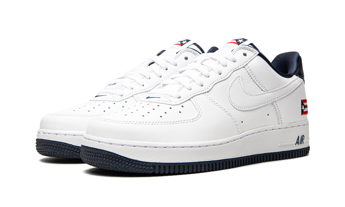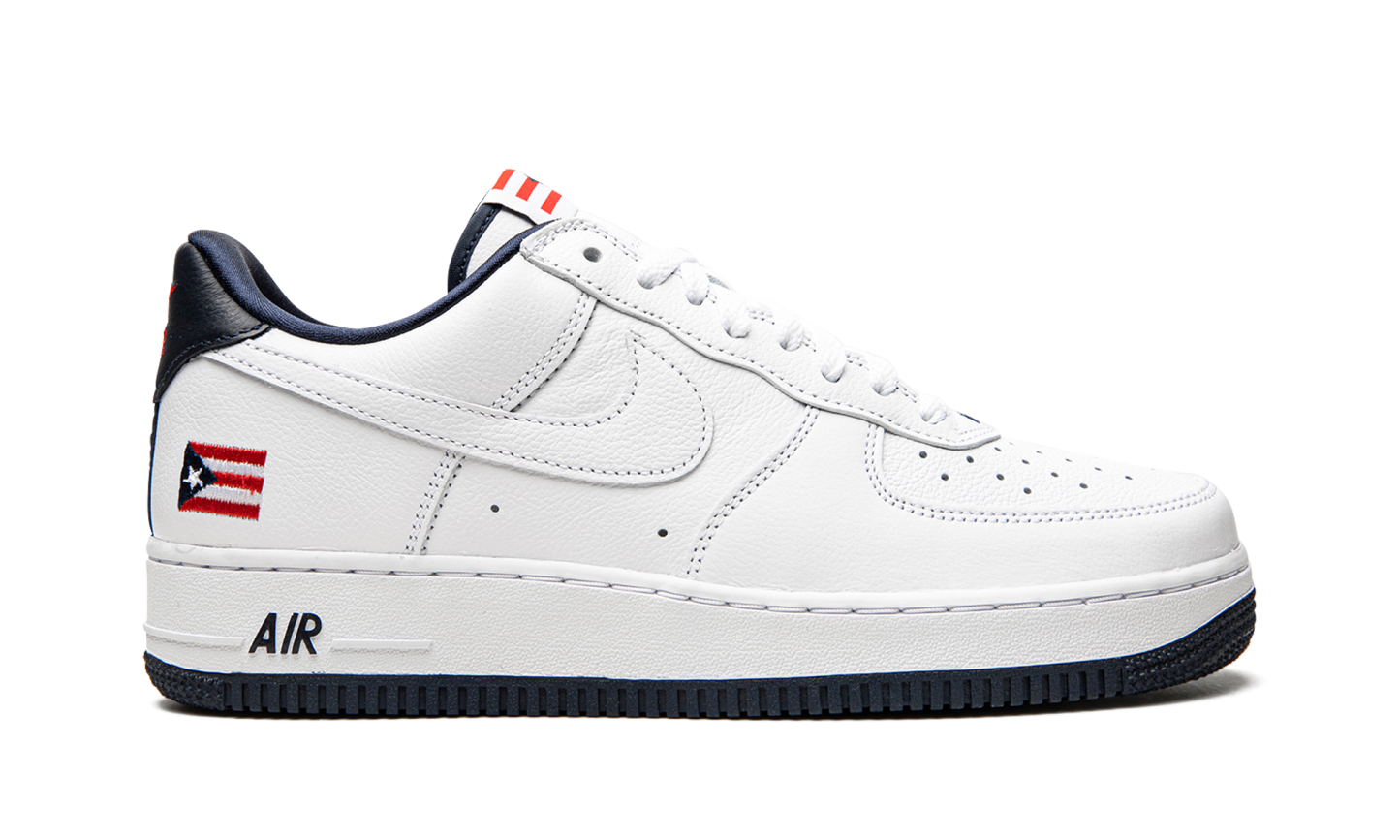 The Nike Air Force 1 Low “Puerto Rico” is an early 2000s colorway that shows love to the Caribbean island. Nike re-released the “Puerto Rico” makeup of the low-top shoe in June 2020 to much fanfare and excitement. One of the most sought-after Air Force 1 of the aughts, the “Puerto Rico” seen here features several true-to-original styling points, including an embroidered Puerto Rican flag on the heel and printed flag motif on the tongue tag. White leather forms the base of the upper and can be found on the perforated toe and on the tonal Swoosh branding on either side of the shoe. The navy blue leather heel tab features contrasting red “Nike Air” embroidery, a look that references the colors of the Puerto Rican flag. A blue liner, white leather tongue, and blue “Air” branding on the heel of the midsole finish off the look of the re-issue of the Air Force 1 Low “Puerto Rico.” Release date: June 1, 2020. Puerto Rico