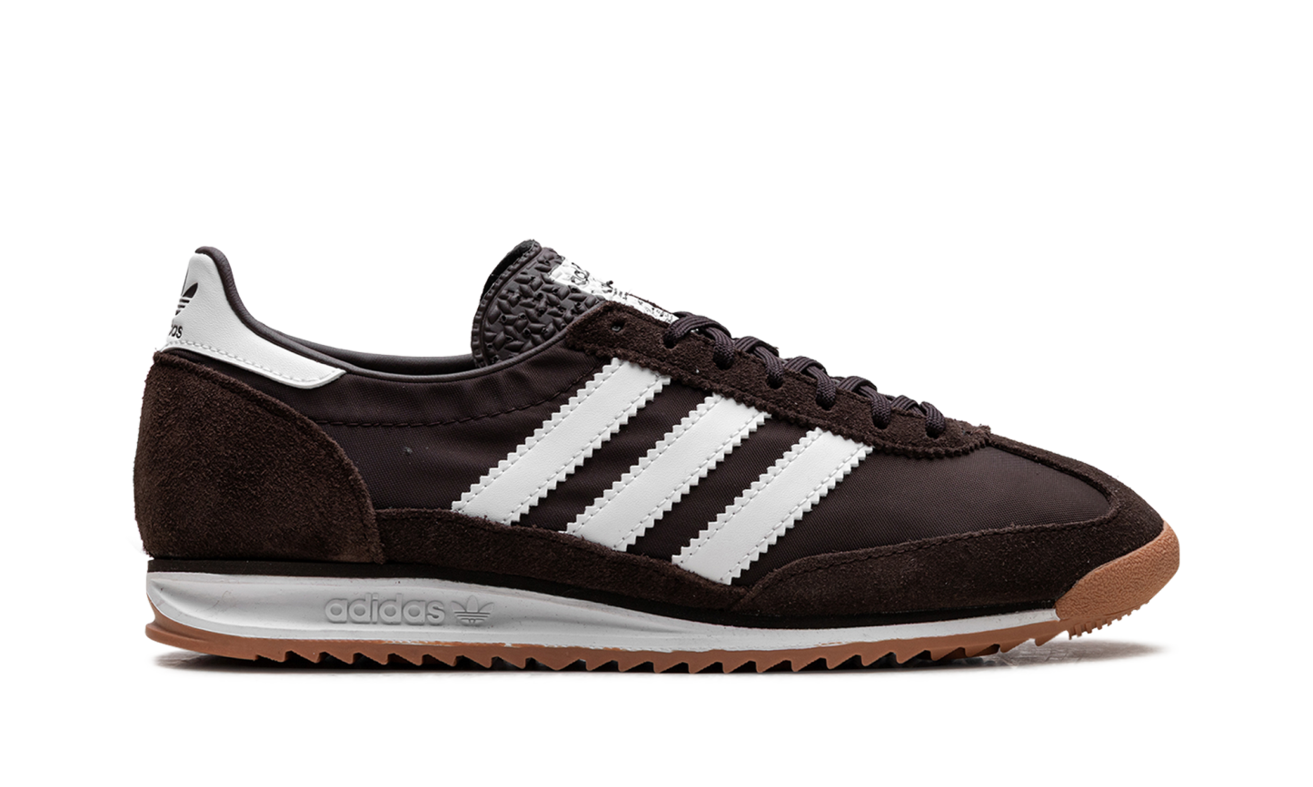 Dive into track and field history with the ADIDAS SL 72 OG WMNS "Dark Brown/White" sneaker. The "SL 72 OG," an homage to the first nylon running shoe, revives a lightweight 1970s Olympian design. The low-profile silhouette features a sturdy nylon upper with rich suede overlays and a signature T-toe. An EVA midsole offers lightweight cushioning, while the iconic design makes this pair a comfortable and effortlessly stylish staple for your casual wardrobe.