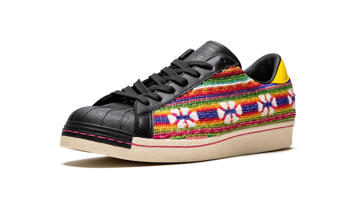 The Superstar 80S PIONEERS Pharrell shoe blends classic Adidas Superstar style with a unique design by Pharrell Williams, celebrating pioneers in music and culture.