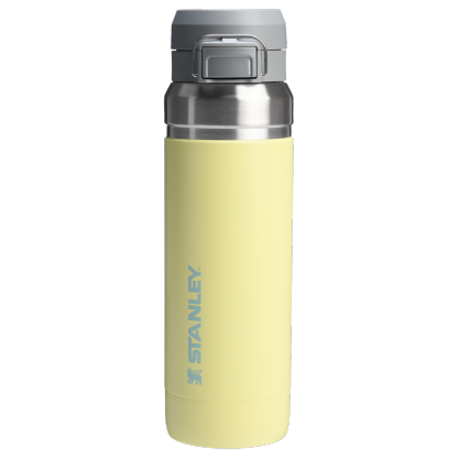 The Quick Flip GO 36 oz water bottle can fit in most cup holders so it can ride along in your vehicle. The Double Wall Insulation keeps your favorite tea, coffee, or other hot drinks hot for up to 10 hours or cold for up to 18 hours. The trigger action lid on your flip top water bottle makes this travel thermos spill-proof and easy for one-handed use. The lid is designed with a push button, which opens the mouthpiece on top. You can throw this in your work bag without worrying.